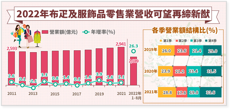 2022 年布疋及服飾品零售業營收可望再締新猷